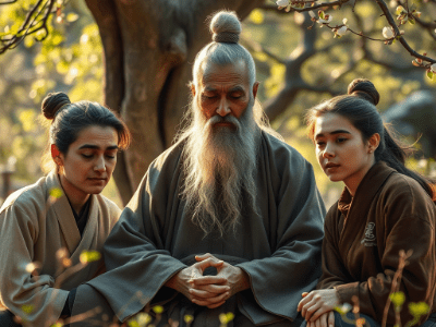 “They took pleasure in the Way and did not mind poverty, so profit could not move their minds. Therefore they were sober yet capable of enjoyment, quiet and able to be serene.“